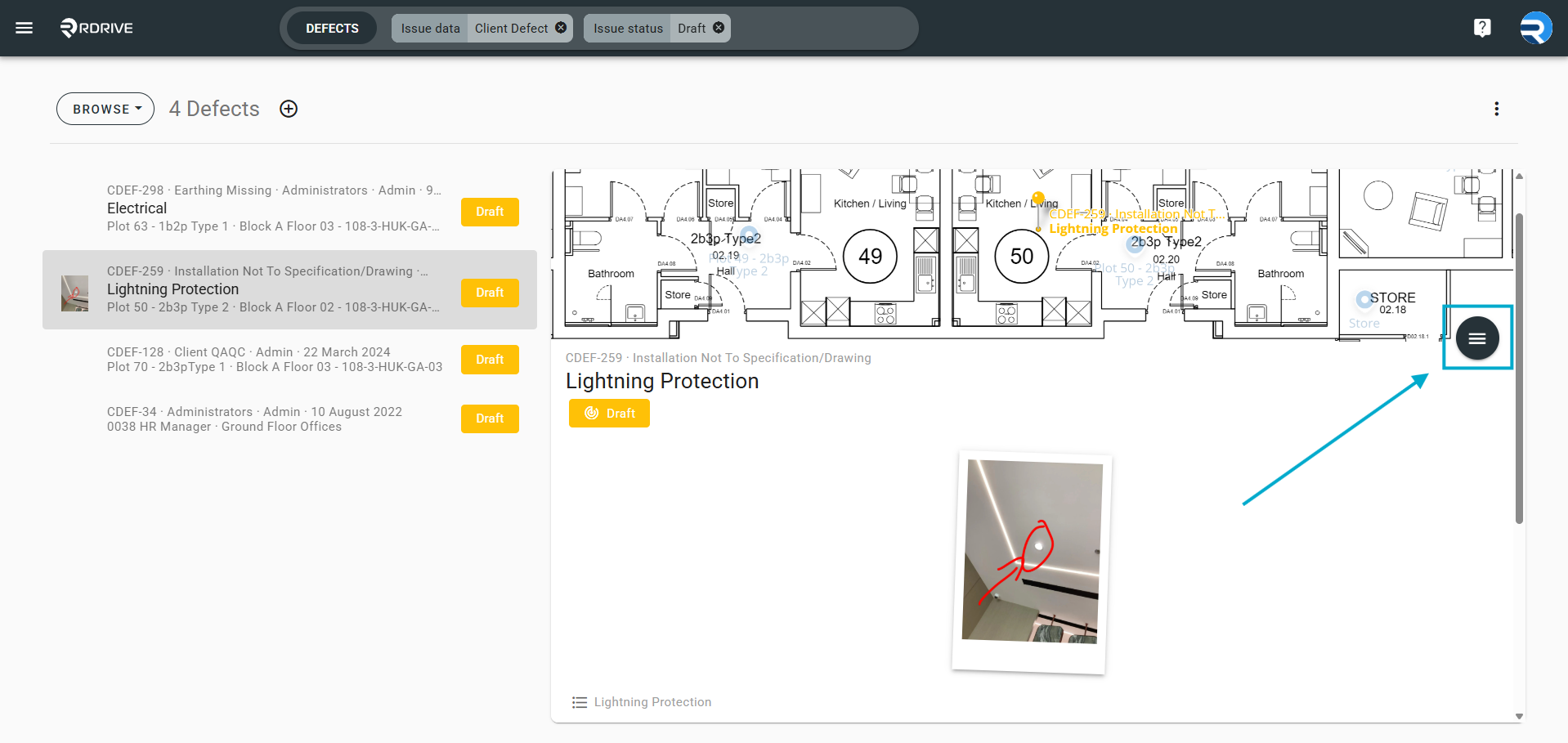 To begin, press the Menu ≡ button in the top left corner to unfold the Menu and gain access to the issue/defect/record page by selecting the category and subcategory.