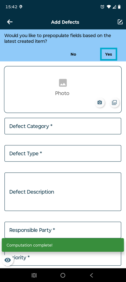 A: Yes. On the app, select "Yes" when prompted to prepopulate from the last item. Or, tap the pen icon in "Add Defects" to copy from an older item. Adjust fields as needed before saving.