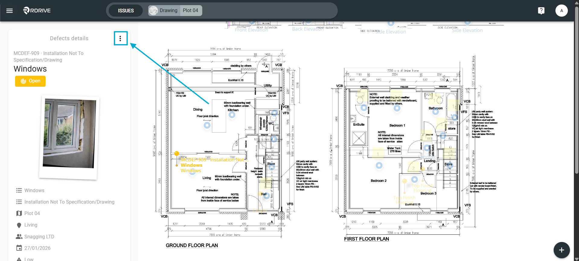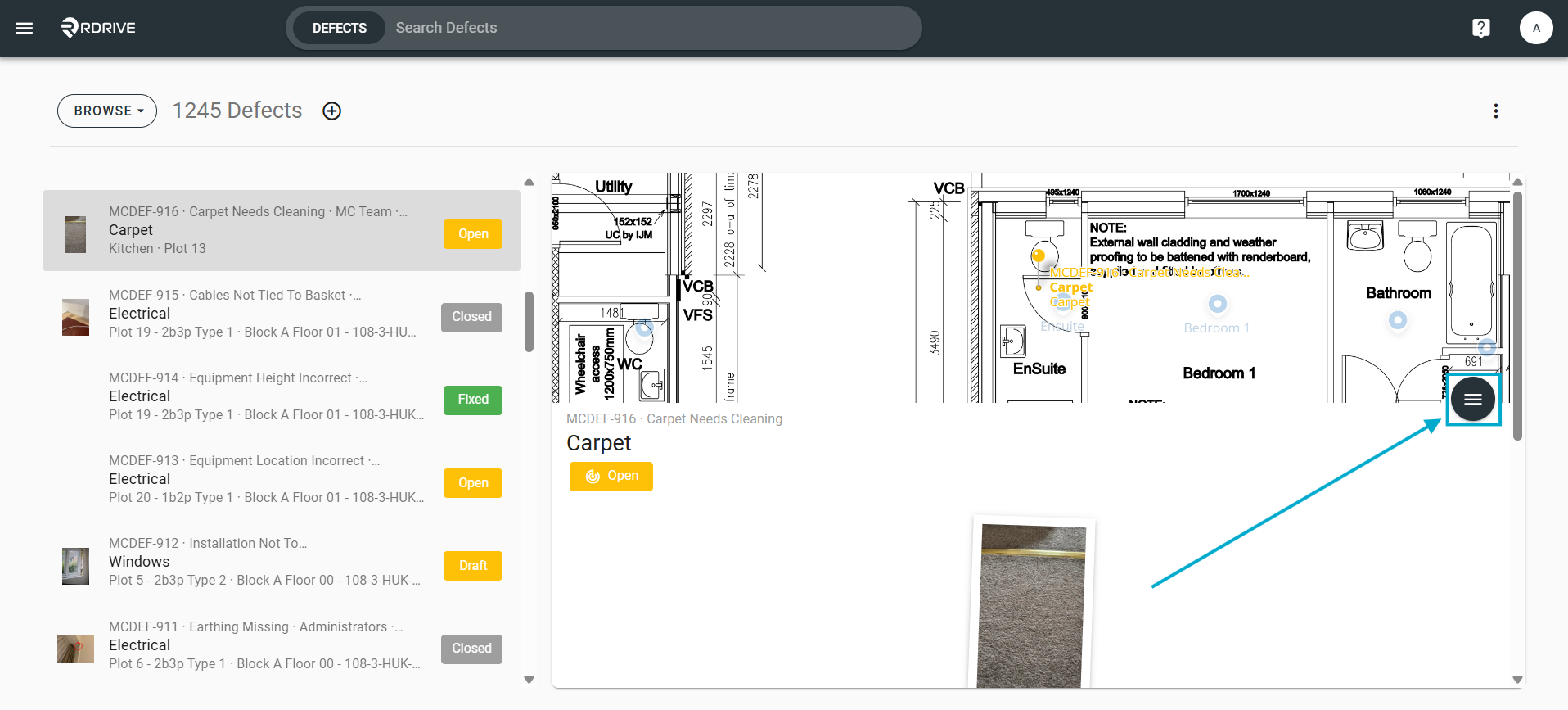 Press the Menu icon ≡ in the top left corner of your screen to unfold the Menu and gain access to the Plan Viewer. Then you select the correct drawing.