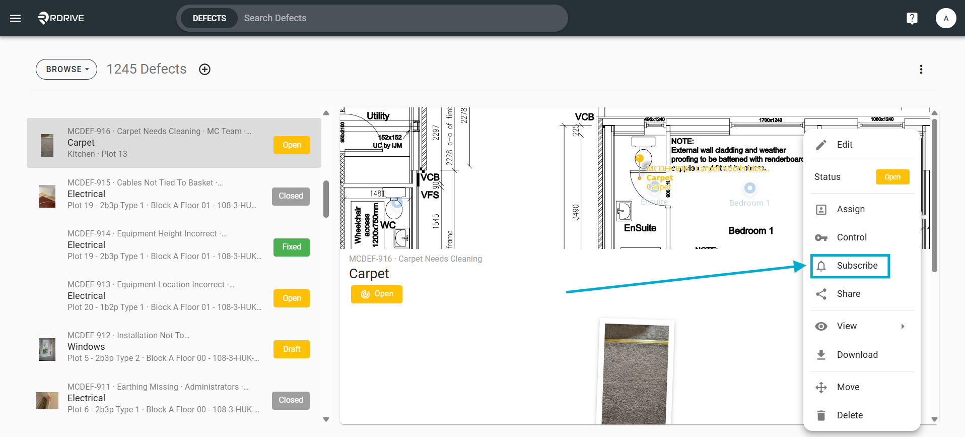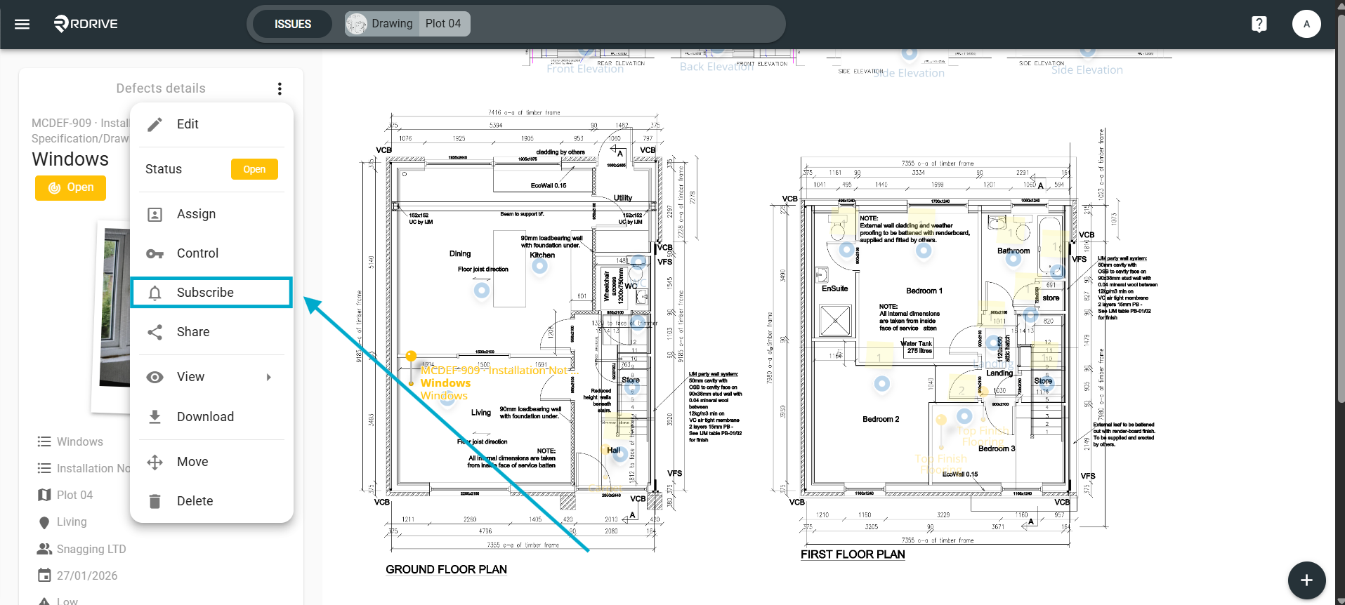 Select the Plan viewer from the side menu and navigate to the drawing/location needed.
