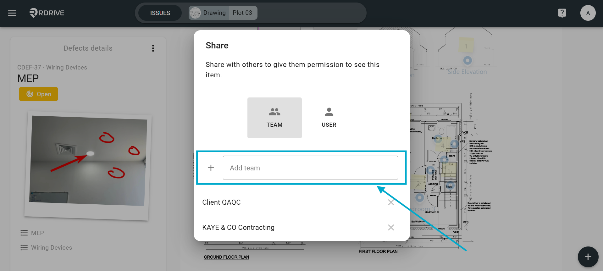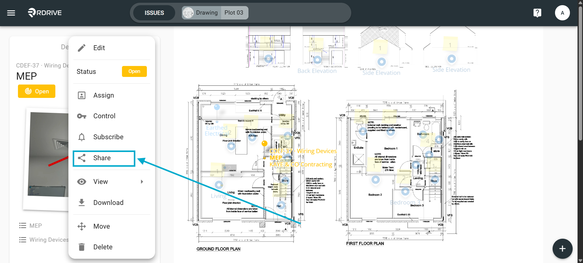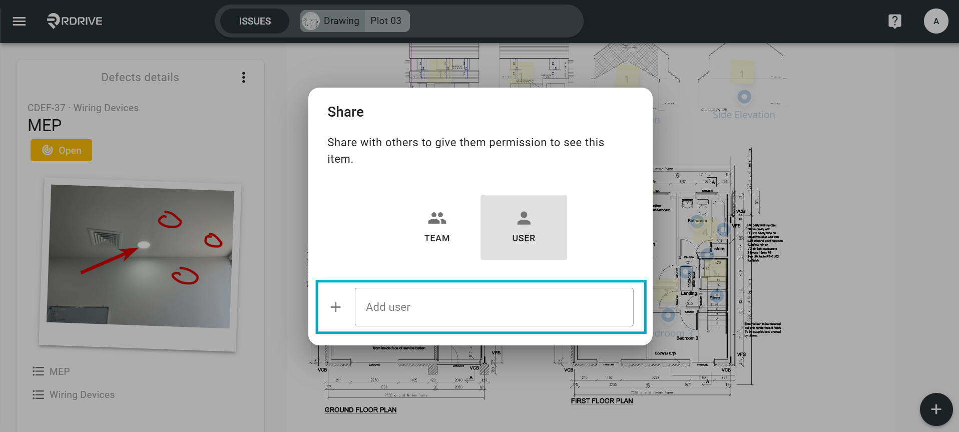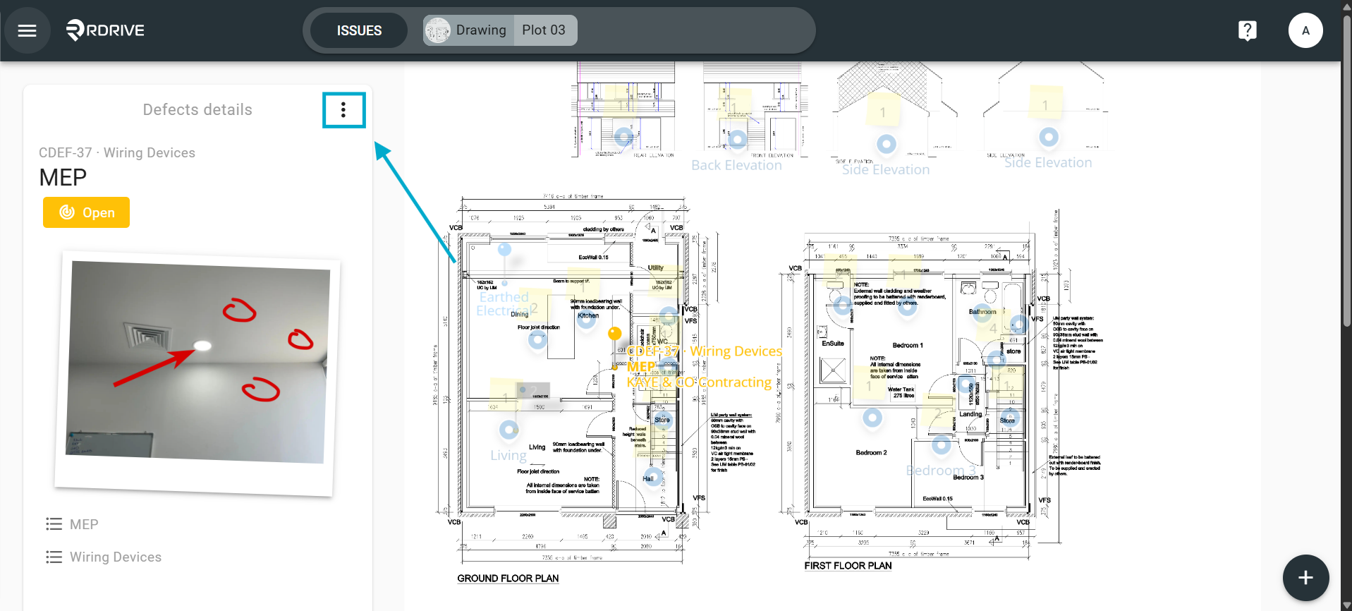 Click on the issue/defect/record pin, the details of which will display on the left-hand side.
