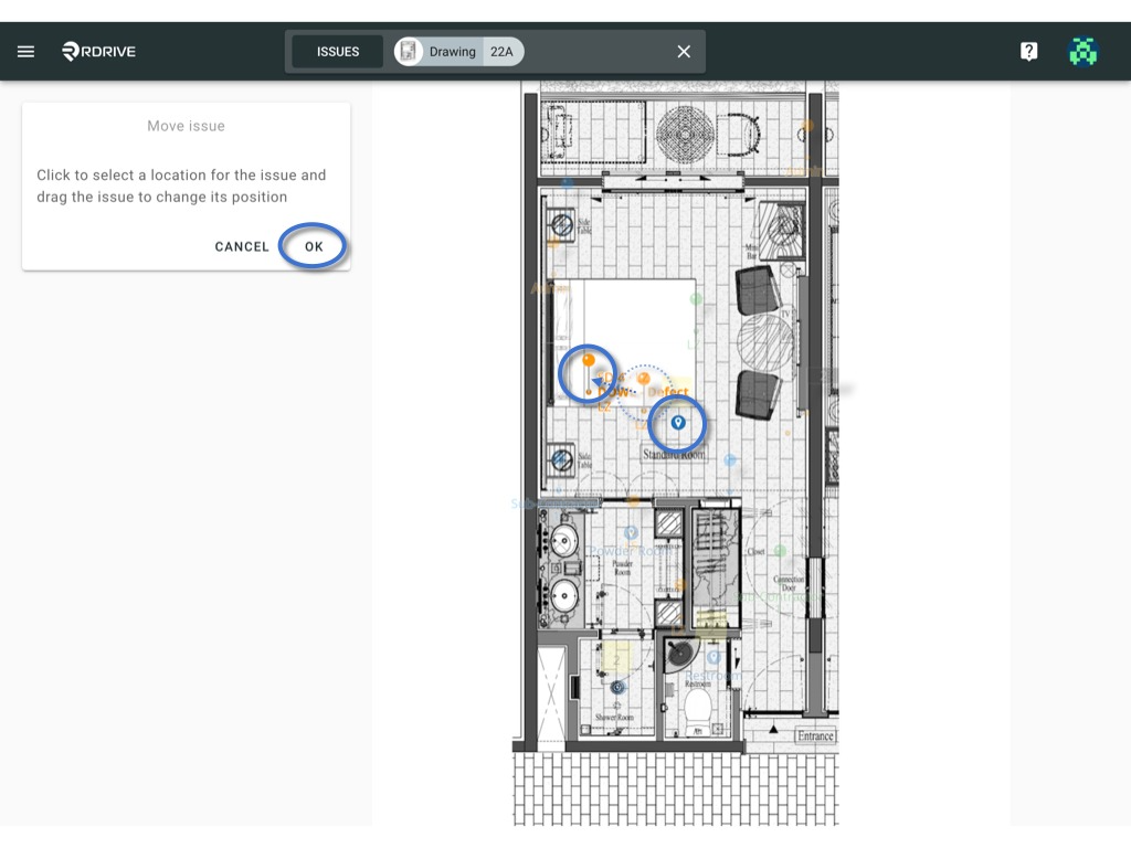 - If you need to relocate it on the same drawing, simply drag and drop the pin to the new location on the plan.