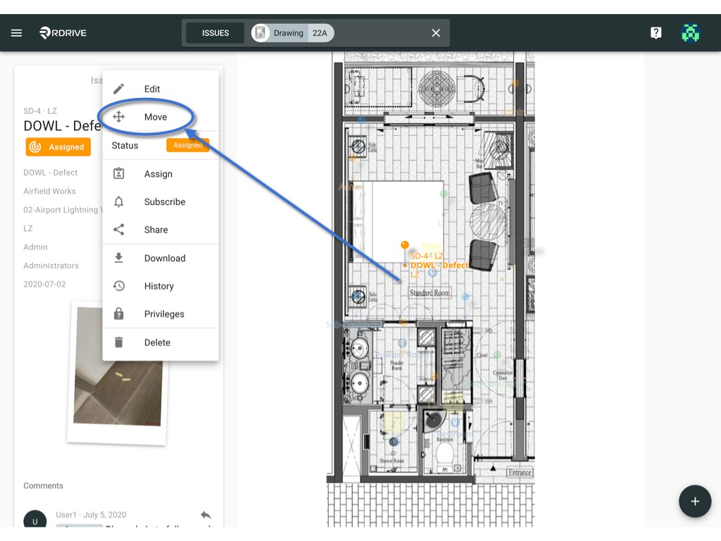 - Purpose: The purpose of this guide is to help users understand how to move an issue/defect/record from one location or drawing to another.