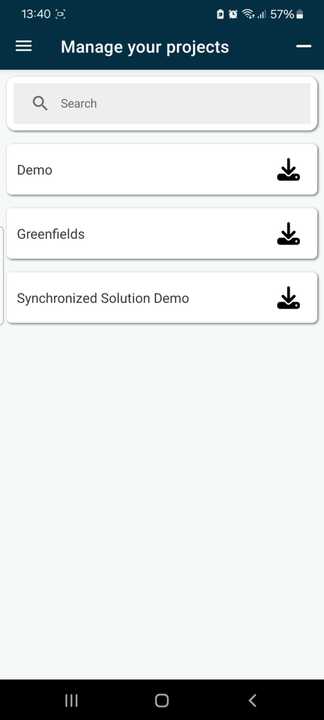 - When working in the mobile app, from the main menu, press the back arrow to go to the project management screen.