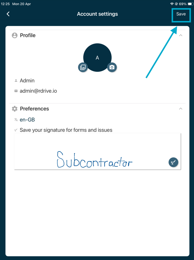 - Purpose: Adding a digital signature within the app to reuse on items within RDrive.